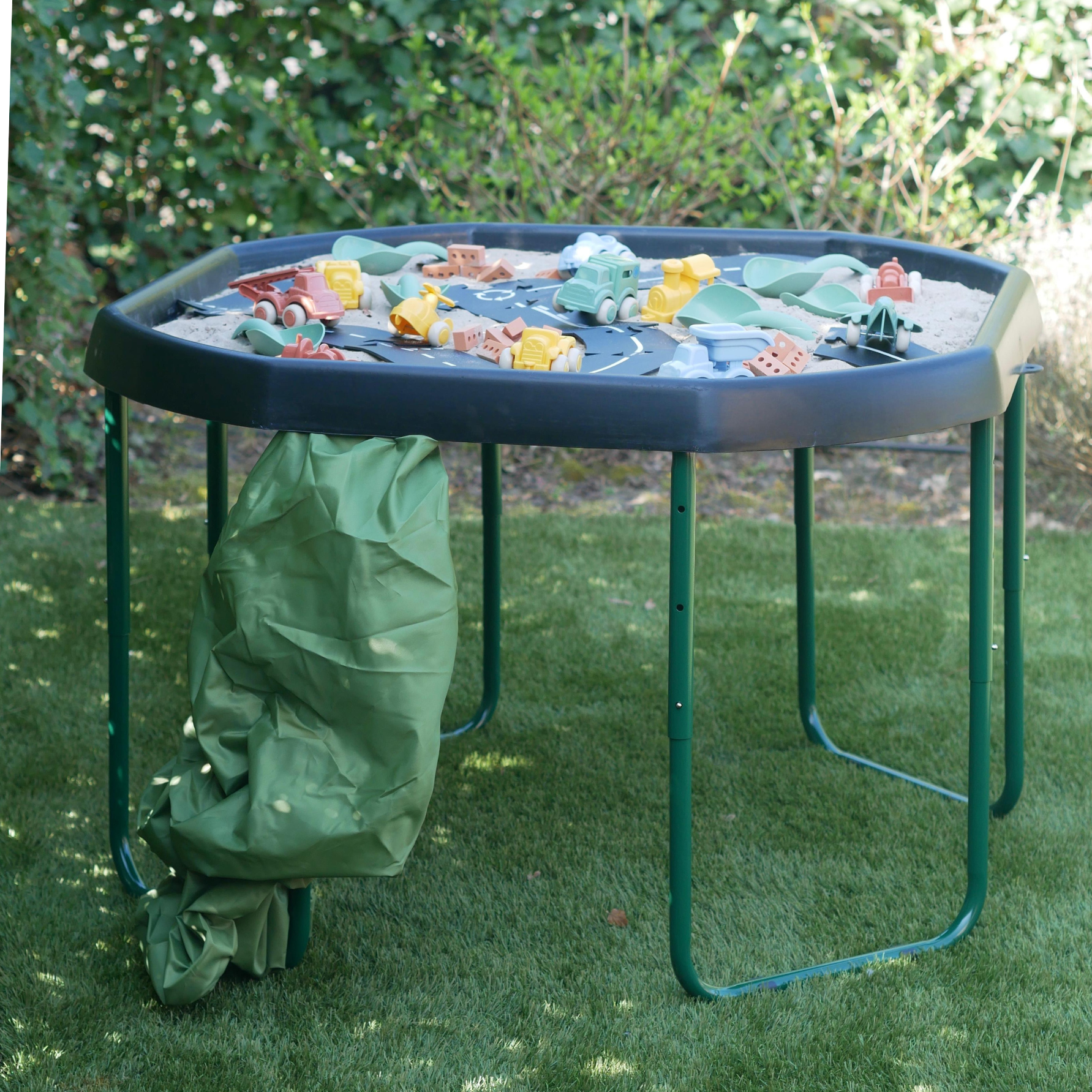 Praktisch afdekzeil voor de Tuff Tray Loose Parts tafel in de kleur groen. Het is een flexibele hoes met elastische rand zodat deze mooi om de tafel sluit. De hoes is waterdicht zodat de tafel droog blijft.