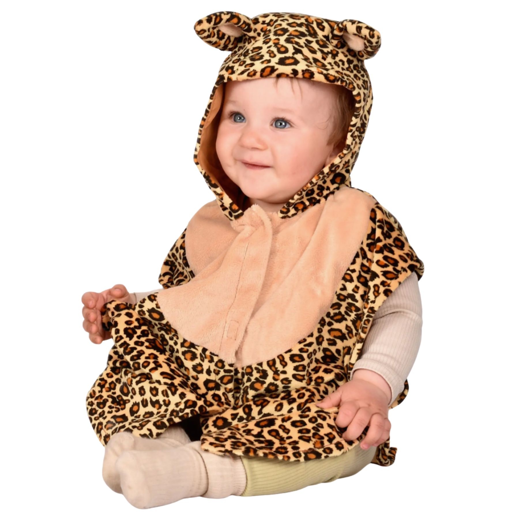 Met deze zachte aaibare cape kunnen kleintjes zich de meest schattige luipaard van de jungle wanen. De cape is super zacht. Dankzij een eenvoudige klittenband sluiting blijft hij goed zitten rond de hals van kleine kinderen.