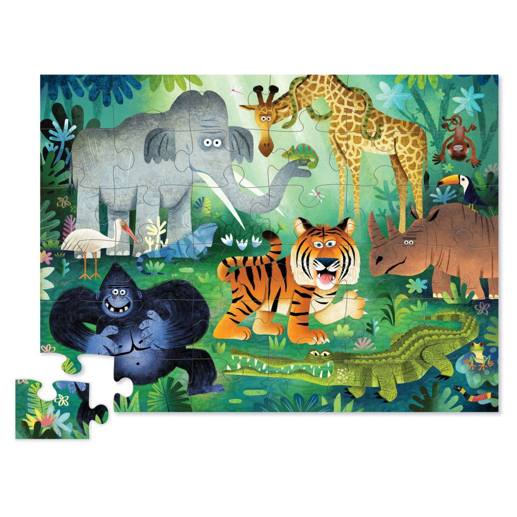 Mooie "Wild Kingdom" Vloerpuzzel met een kleurrijke afbeelding van wilde dieren in de jungle met prachtige kleuren. De puzzel bestaat uit 36 stevige jumbo puzzelstukken van hoge kwaliteit. De verpakking is compact en ruimtebesparend, geleverd in een prachtige, stevige geschenkdoos met silhouet. Puzzelen stimuleert zelfstandig denken en oplossen, vergroot de ruimtelijke vaardigheden en helpt de fijne motoriek te verbeteren.